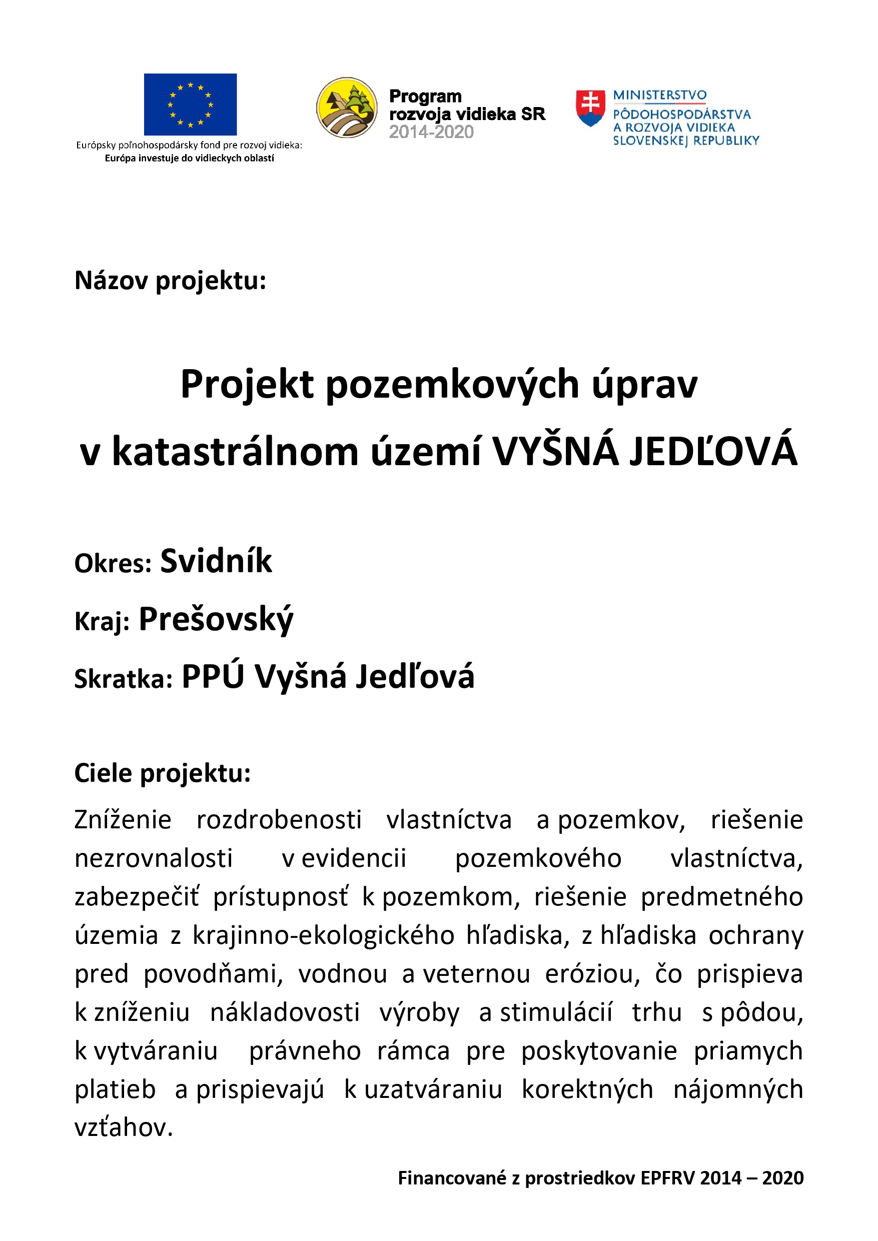 Projekt pozemkových úprav sa v obci Vyšná Jedľová realizoval v rokoch 2021-2024. Jeho hlavným cieľom bolo riešenie rozdrobenosti vlastníctva pozemkov a jeho neprehľadnosť. Pred začiatkom PPÚ mal priemerný vlastník viac ako 15 parciel. Každú parcelu pritom spoluvlastnil s ďalšími 10 osobami. Po ukončení PPÚ sa stal vlastníkom 3 parciel s výlučným vlastníctvom.